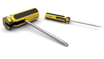 好的產品設計,即能滿足人們日常生活需要,也能節省材料,在大多數人的概念里,螺絲刀和小榔頭是兩種工具(上圖),設計師巧妙的發現人們的情感需求,將兩件工具合二為一。