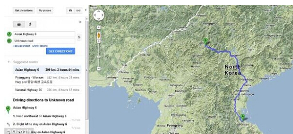 許多人認為導航是這個時代理所當然的東西,但其實在那些對網絡嚴格管制的地方,例如朝鮮,導航是一種奢侈品。此前,谷歌地圖的路線、鐵路、公園等信息都設法繞過了這些封閉區域。而現在,谷歌增加了在朝鮮的衛星導航數據。