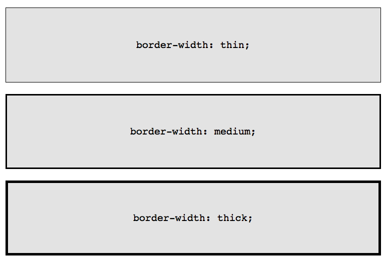 除了指定具體的邊框寬度值,也可以使用這三個關鍵詞:thin,medium 和 thick。