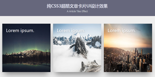 這是一款使用純CSS3制作的超酷文章卡片UI設(shè)計效果。該文章卡片帶有陰影效果,當鼠標滑過卡片時,文章的描述信息會以滑動動畫的方式顯示在卡片中。
